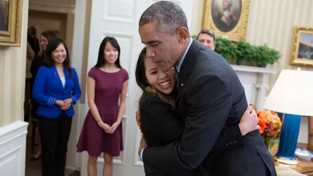 And the same day she was released from a high-level containment unit for Ebola treatment, nurse Nina Pham gave Obama a bear-hug in the Oval Office.