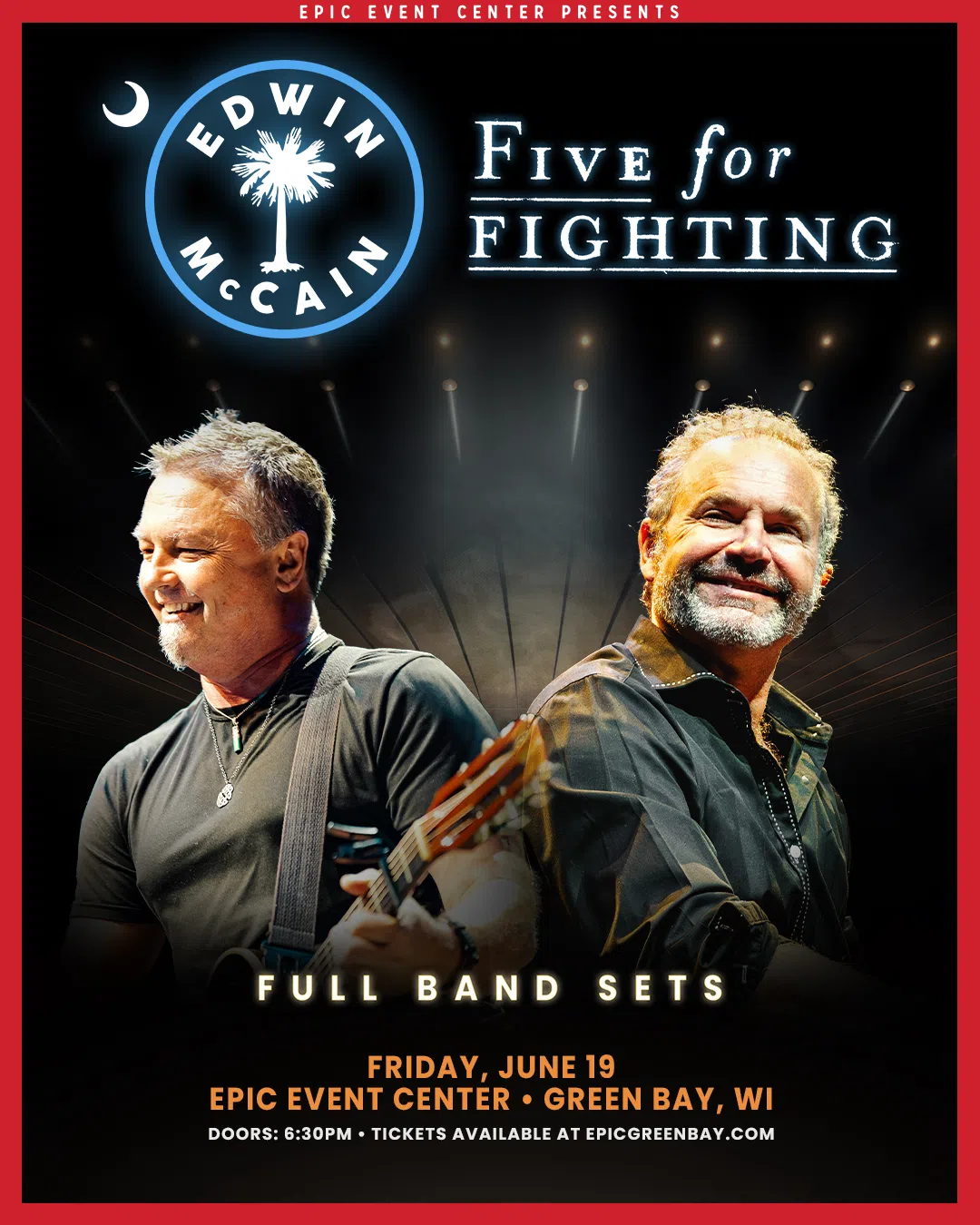 For the first time ever, Edwin McCain and Five For Fighting are joining forces for a special co‑headline tour and they’re making a stop at EPIC Event Center on June 19, 2026 at 7:30 PM. Doors open at 6:30 PM, giving fans plenty of time to settle in for a night filled with legendary vocals, heartfelt lyrics, and the timeless hits that defined an era.
